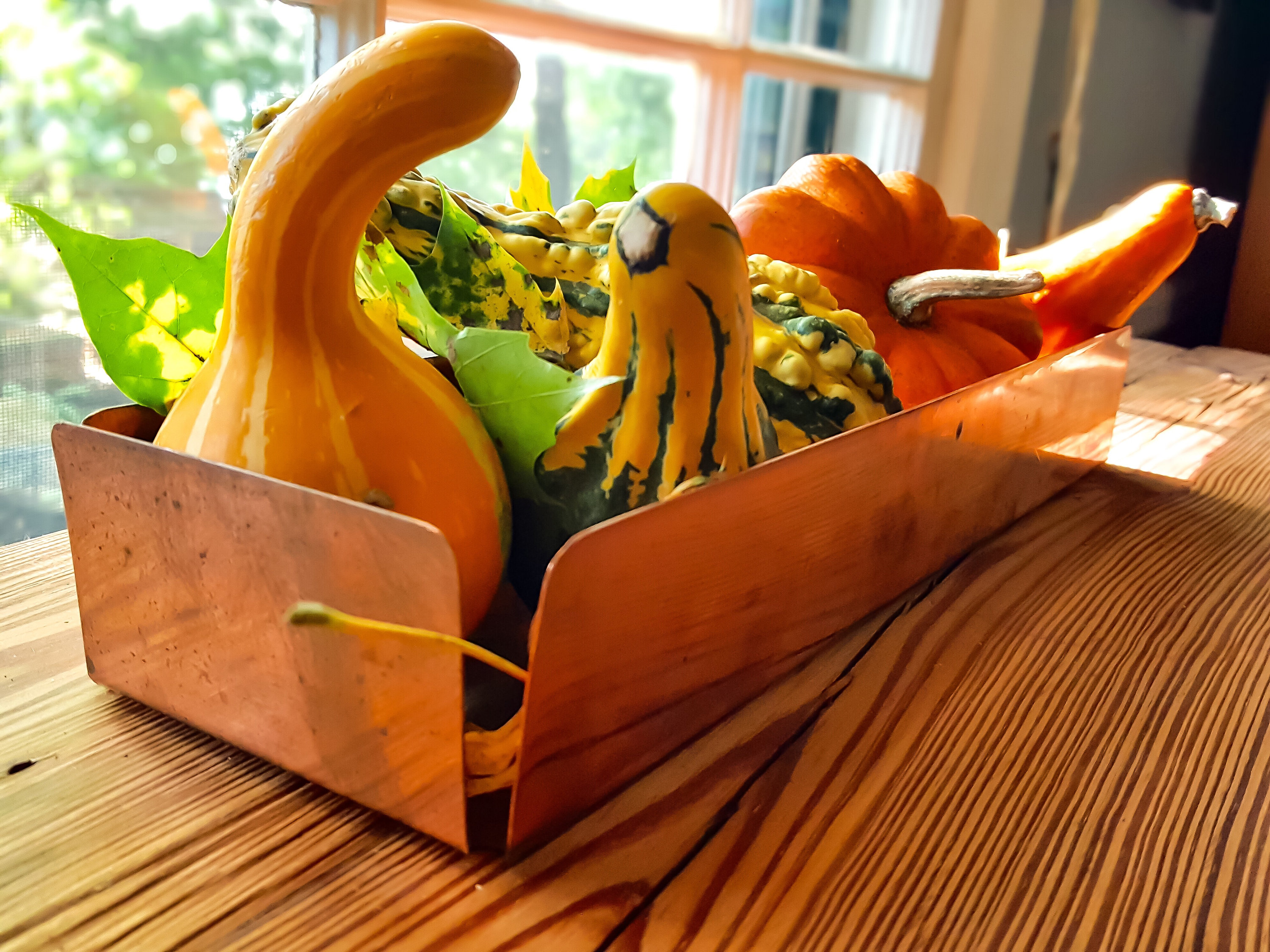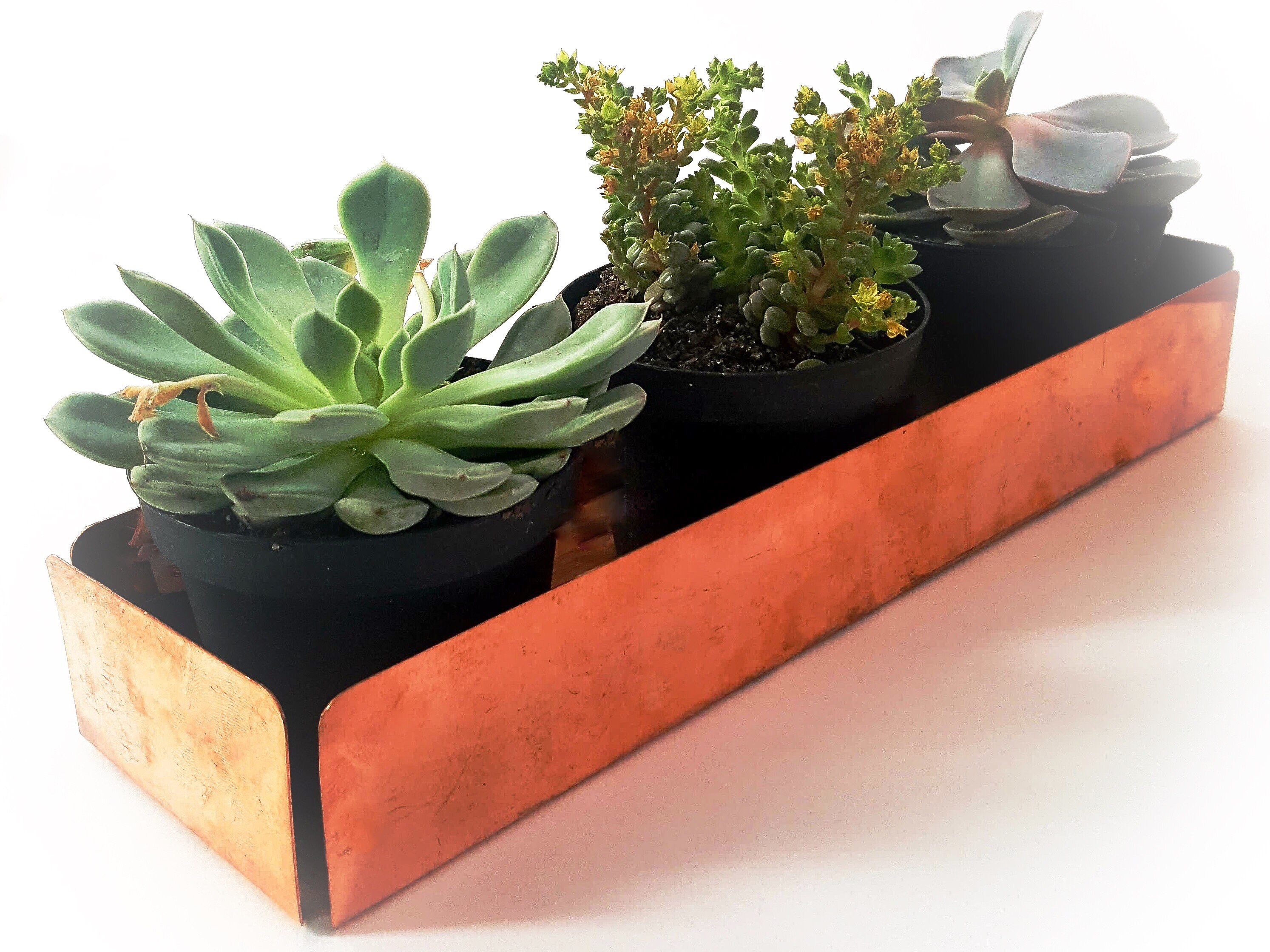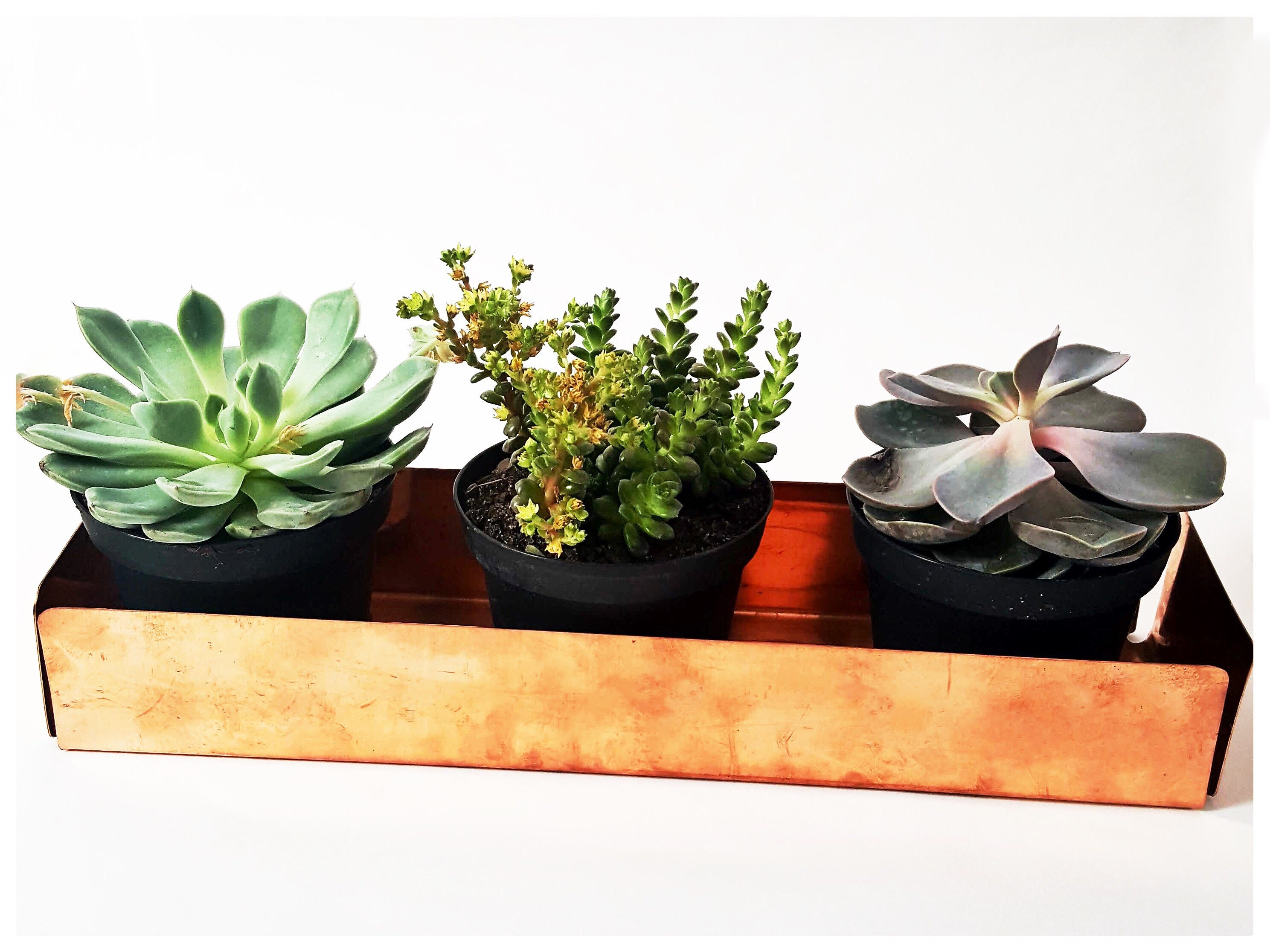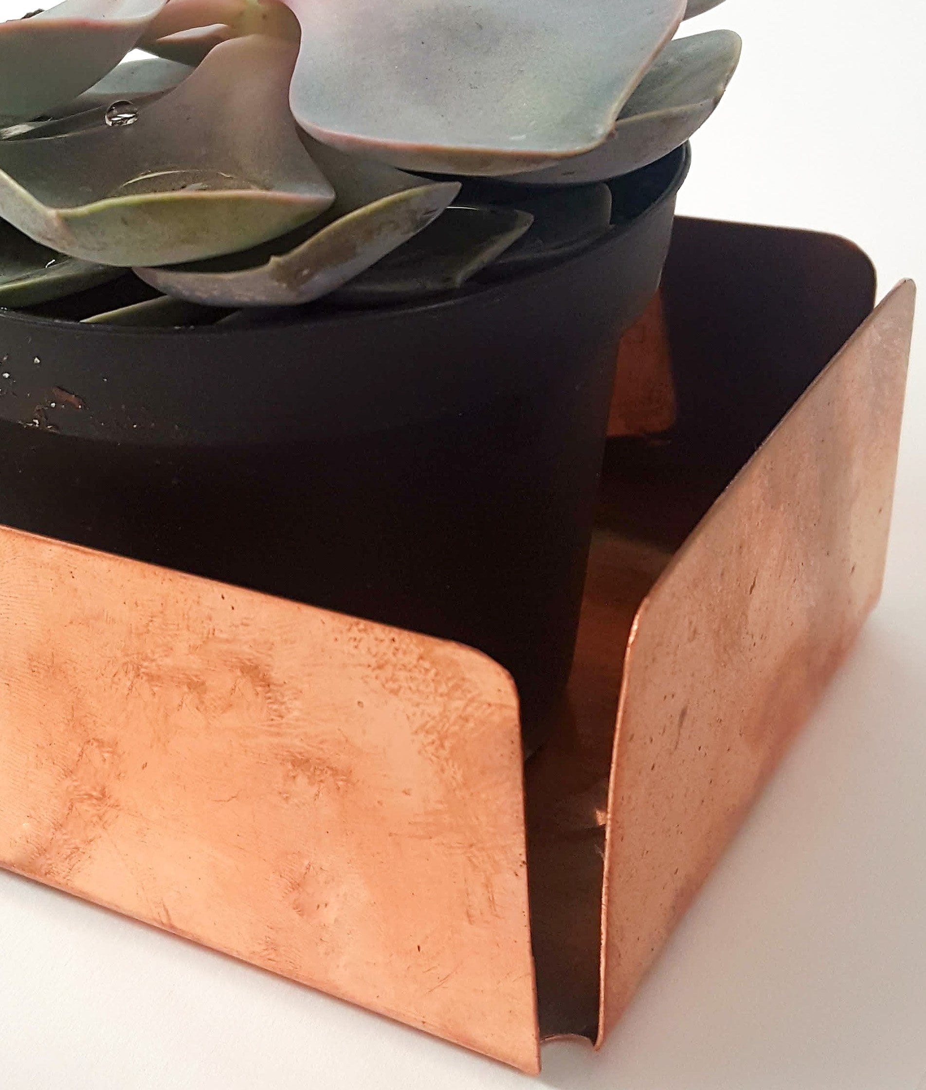 Solid copper rectangular tray with open corners. Great centerpiece for coffe, kitchen or dining table. Ideal for displaying house plants, fruit or holiday decorations.