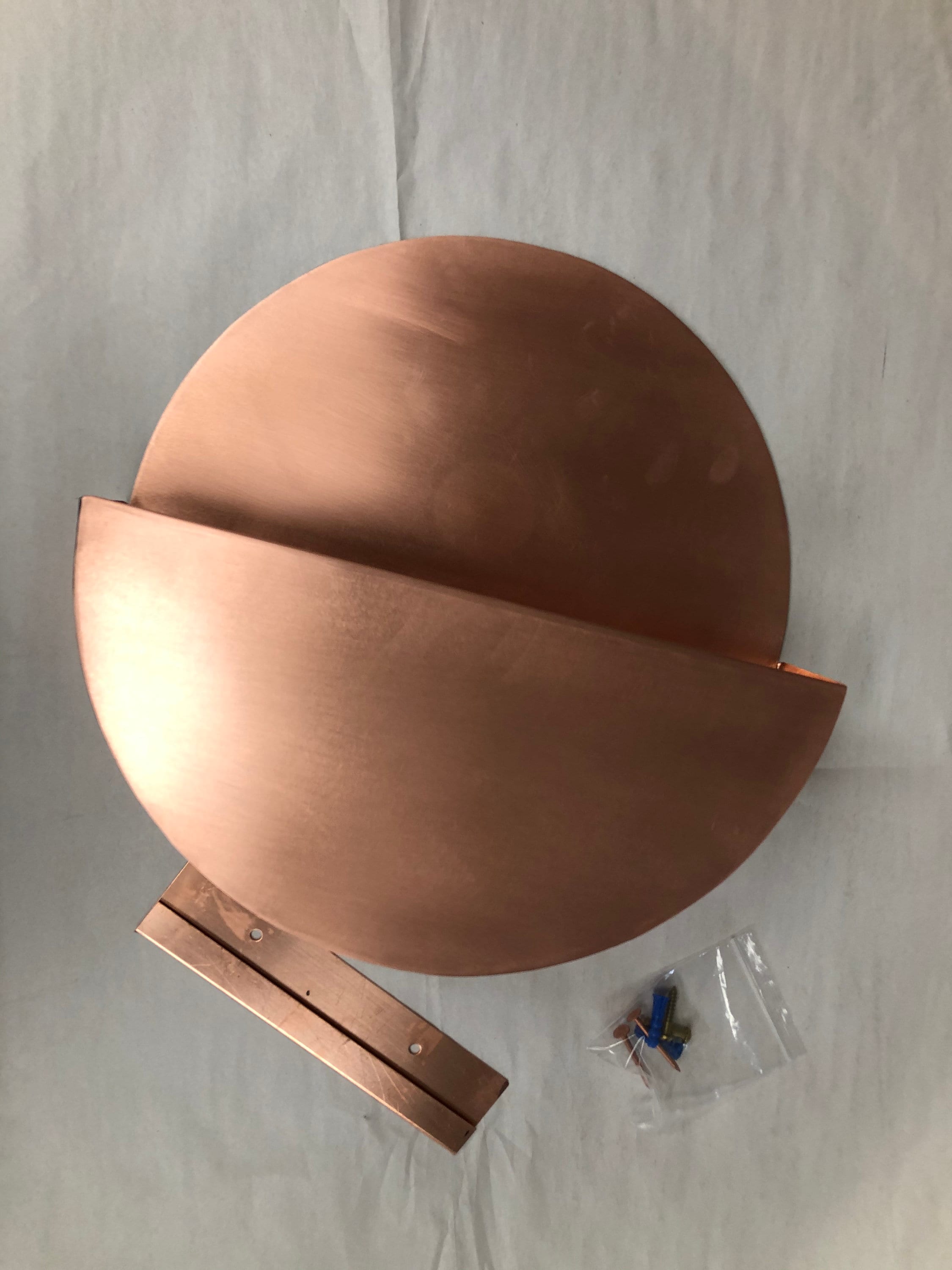 Copper will age naturally to a rich bronze patina. To restore copper shine finish, buff it with copper polishing cream.