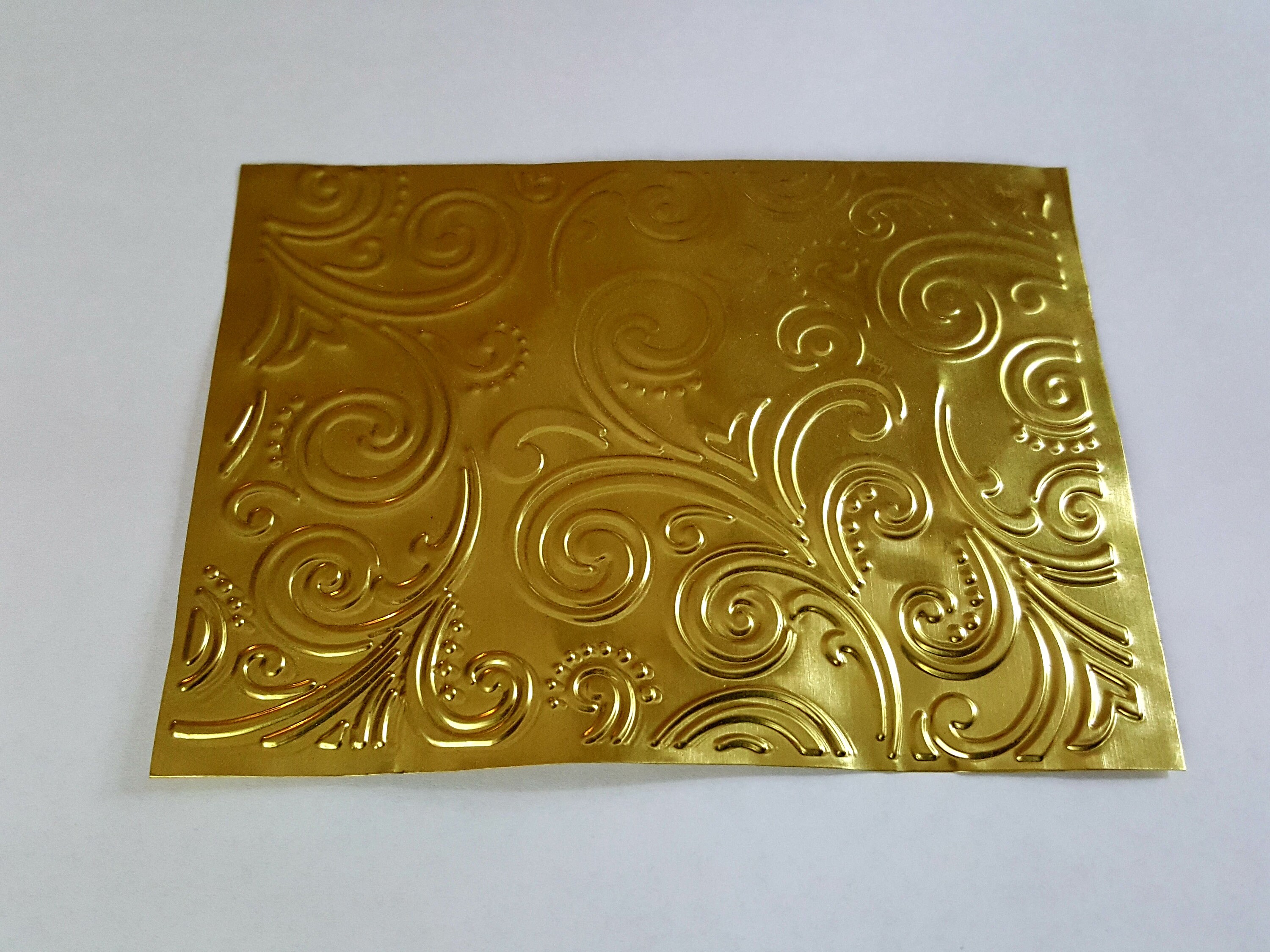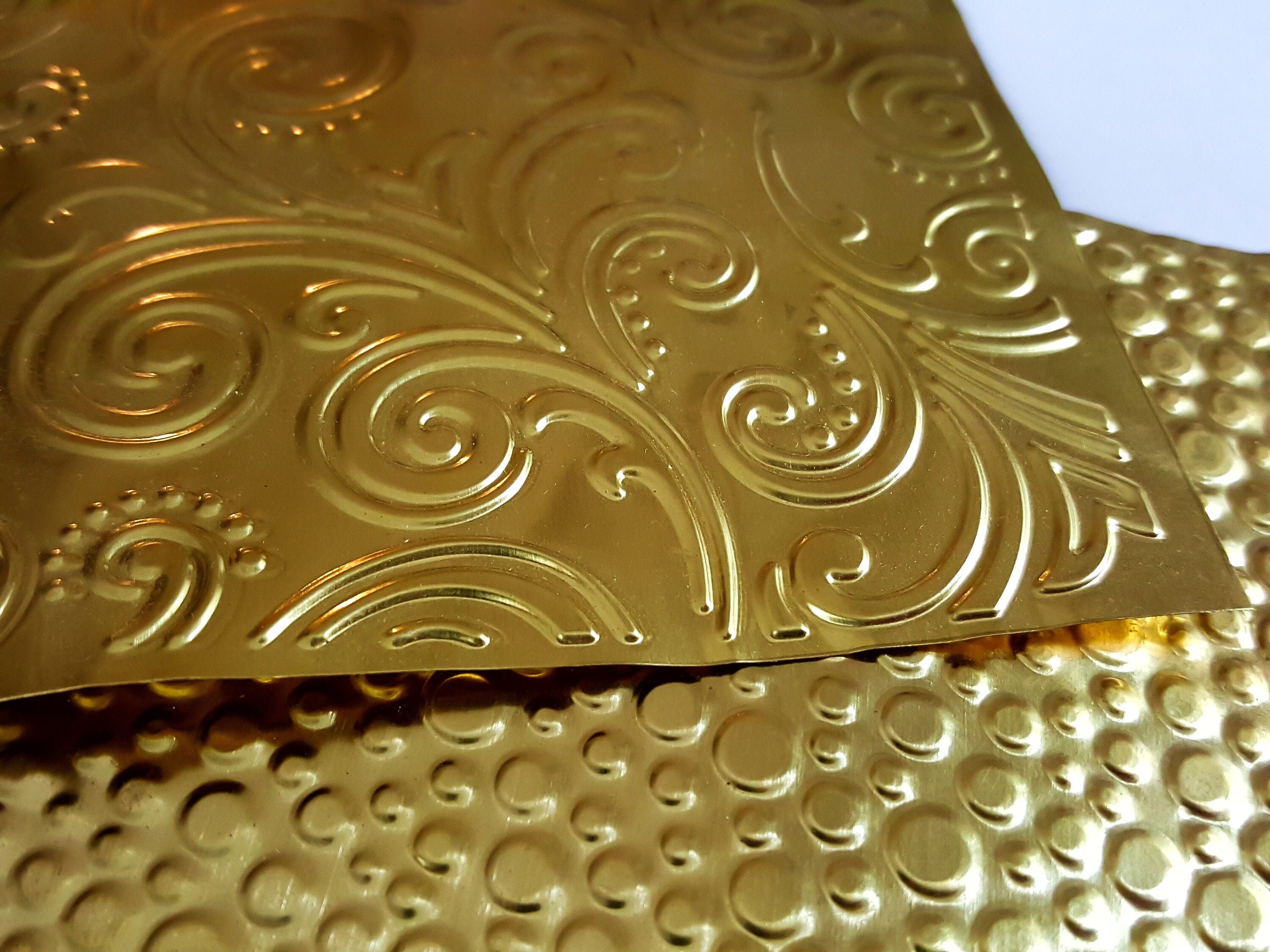 Embossed Soft annealed 36 gauge brass foil sheets. Easy to cut and solder. Perfect for scrapbooking or any type of craft.